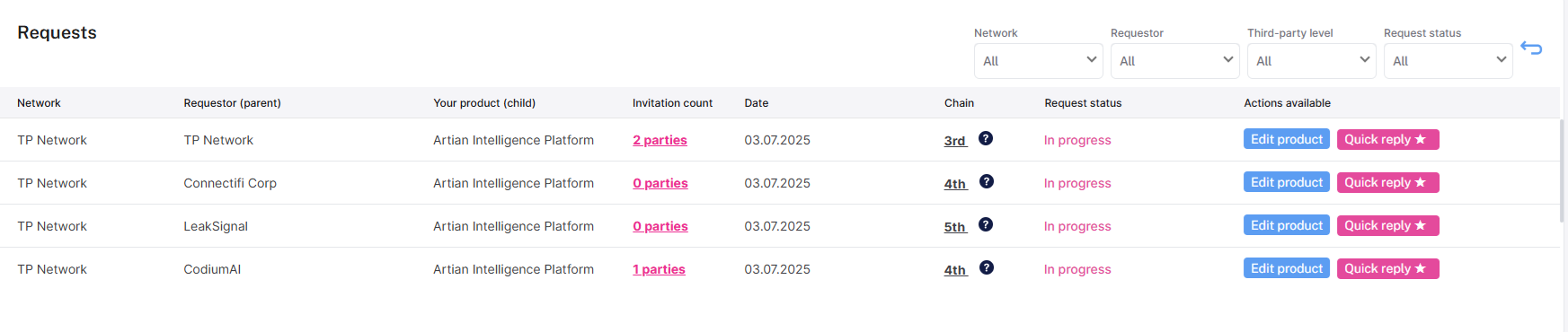 From the Request widget on your dashboard you can use Quick reply to add details of your supply chain using existing Third parties you have previously added.