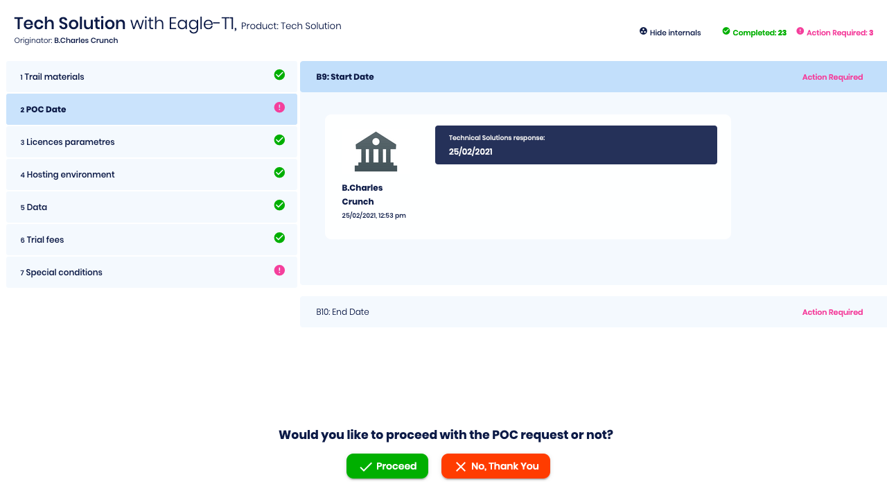 Once you have sent the POC request, the vendor will receive an email notification and can then either approve or reject the dates you have chosen for the trial.