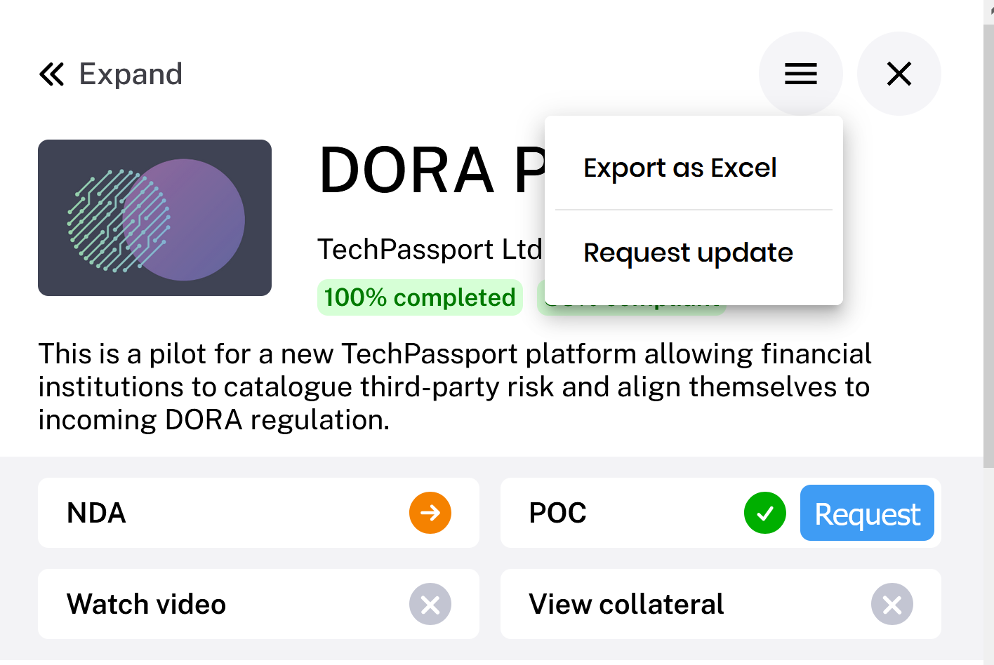 In the case you want to review a supplier's information you can request an update to their supplier profile and ask them to add more information to their profile. Within a supplier profile click the menu with the three horizontal lines in the top-right corner, then click 'Request update'.